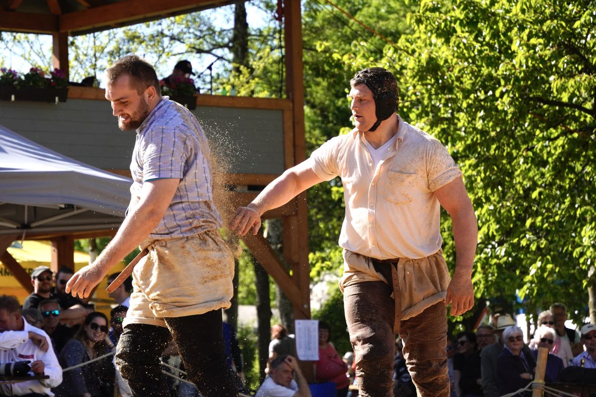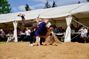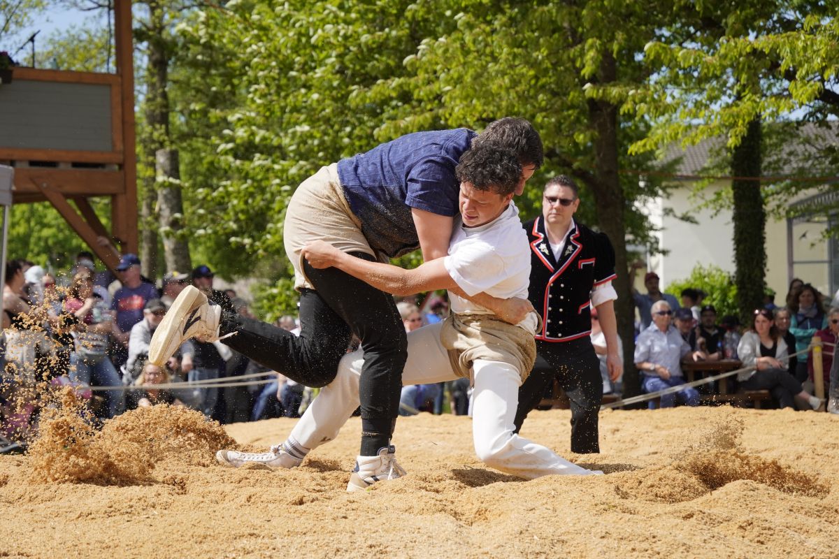 • Tanner Louis schwingt gegen Eugster Yanis, Gast vom Schwingerverband Bodensee und Rhein